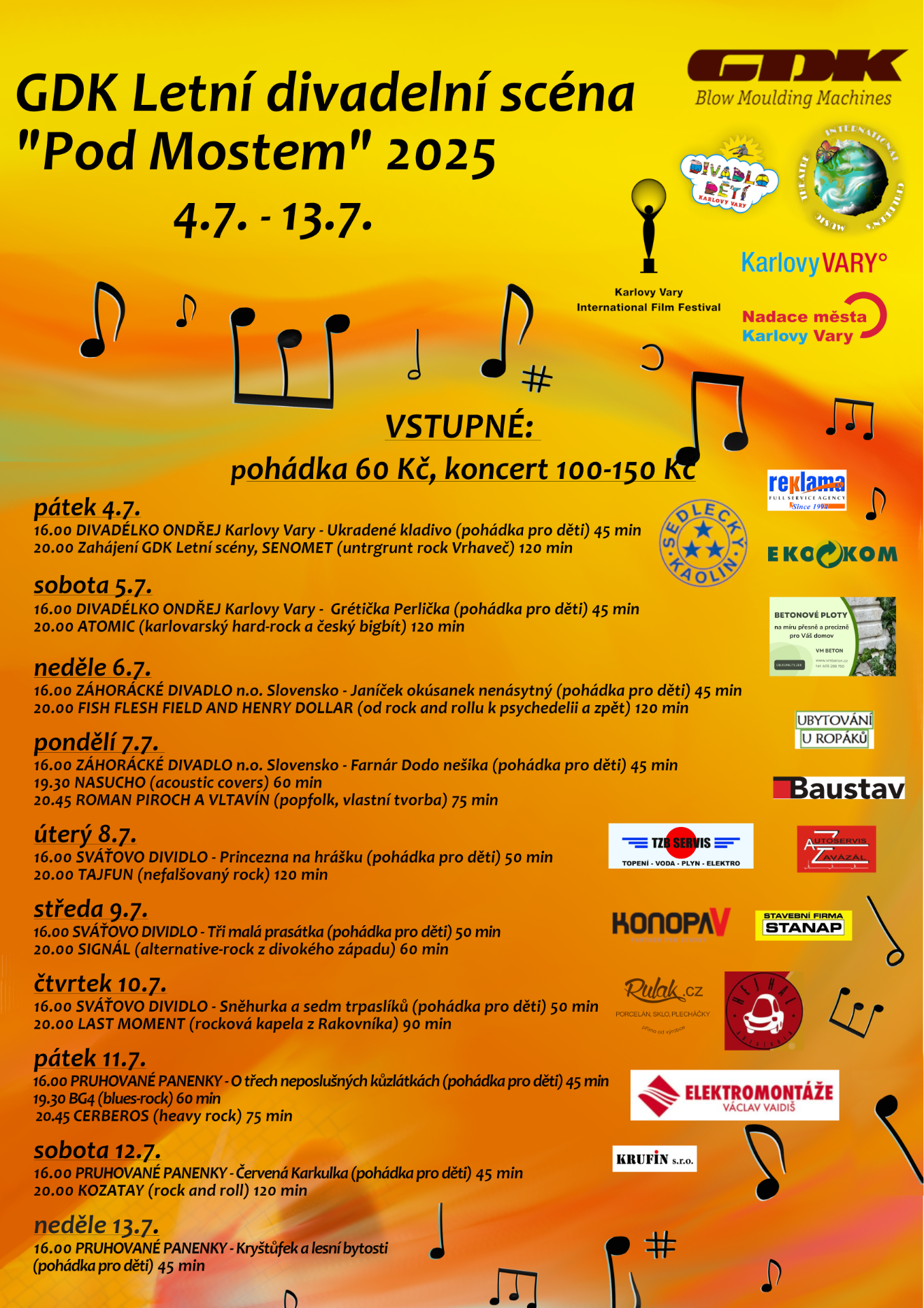 Naším společným pokladem jsou karlovarské děti. Snad věříte tomu, že vychovávat je musíme společně, aby naše současná píle nebyla zmařena časem. V době prázdninové se nám děti jako včelky na voňavé květy slétají na Letní scénu Pod mostem. Nemají v tuto dobu jinde příliš co na mlsání v oblasti kultury a osobnostního rozvoje.
